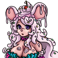 This stacked, sugar-sweet mouse bears a singular curse—or blessing: hair composed entirely of ice cream. In the filth-ridden wastelands of Niflheim, this means she must fear not only the realm’s lecherous inhabitants, but the hungry ones as well.