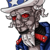 Code-named S. A. M. (Sadomasochistic American Machine). Built to defend the world against terrorism and bring American Democracy to unknown lands. Invokes Manifest Destiny when needed to justify his cruel actions.