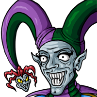 A mysterious jester with two prominent voices in his head: The devilish Grins and the happy Hops. Often rolls dice to aid in his decision making.